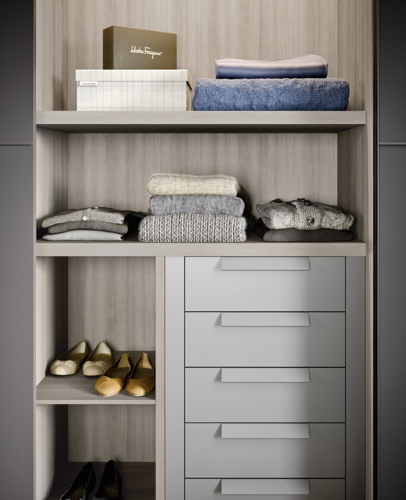 Daarnaast biedt Kastenstudio kledingkasten van Novamobili, onderdeel van de Italiaanse Battistella groep. Dit merk onderscheidt zich door verfijnd design en modulaire kastoplossingen met veel keuze in kleuren, fronten en materialen. Hierdoor kan een kledingkast worden samengesteld die perfect aansluit bij de stijl van jouw slaapkamer.