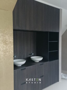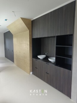 𝗠𝗮𝘁𝗲𝗿𝗶𝗮𝗮𝗹: Basis in EGGER U999 ST12 Zwart, fronten in DecoLegno LR29 Sablé